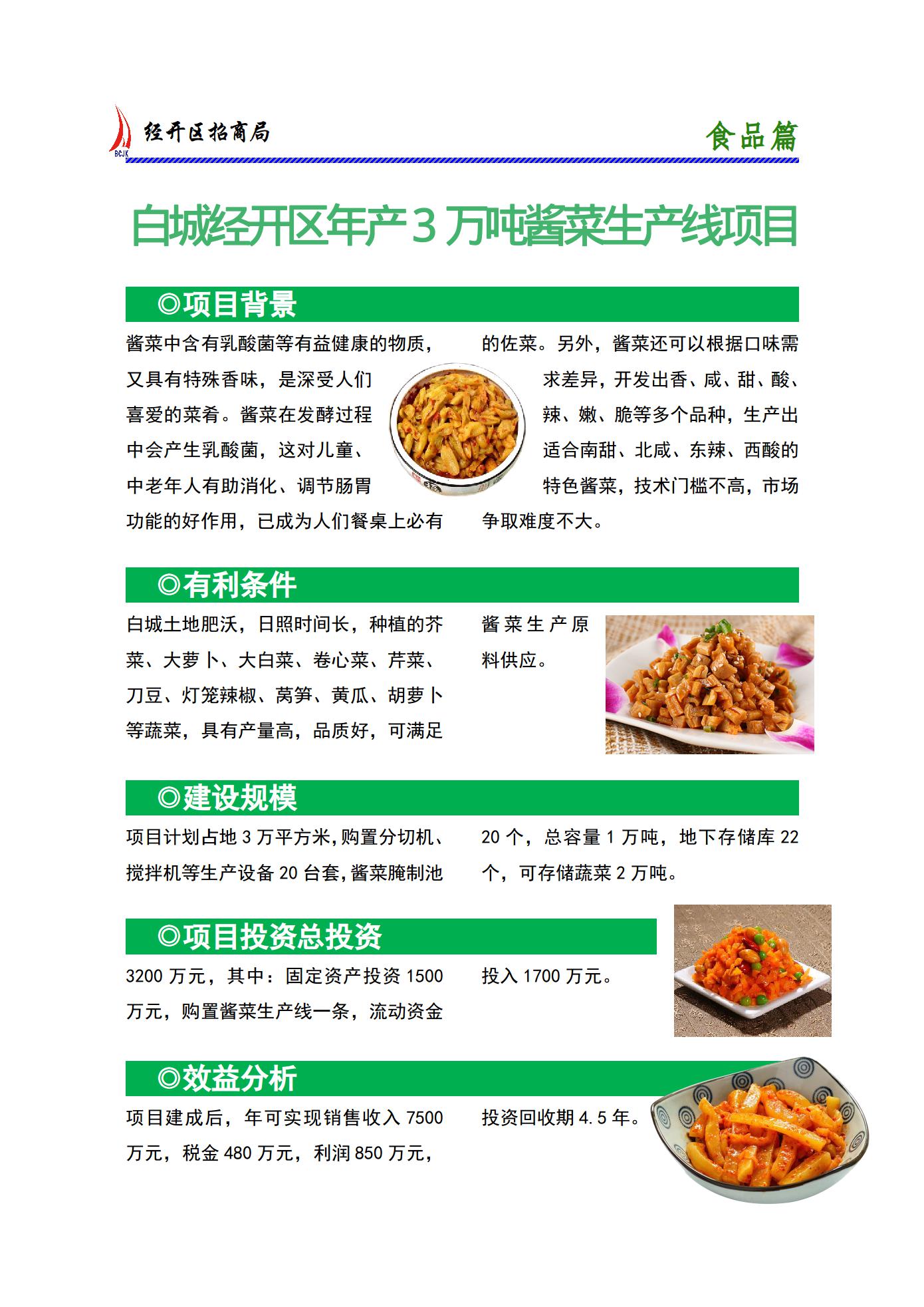 白城经开区年产3万吨酱菜生产线项目